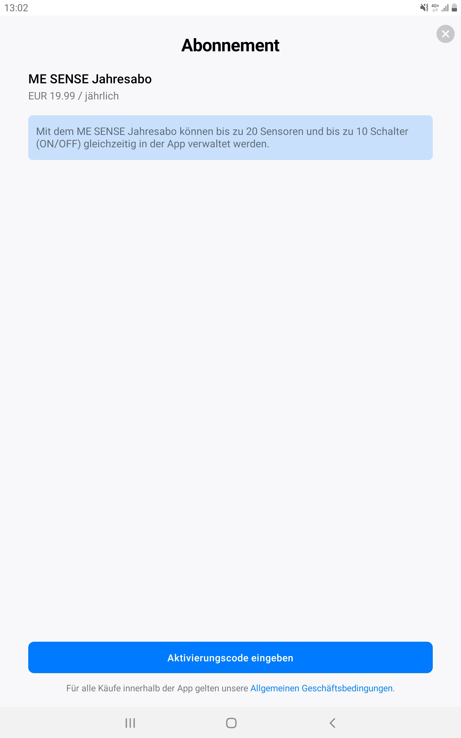 - Activation code is requested when clicking/opening a sensor